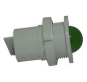 Лампа СКЛ 14А-Л-2-220 – арматура светосигнальная. Представляет собой индикаторную лампу нормальной яркости (15 МКД), со встроенным светодиодом, высокой плоской, рассеивающей свет, окрашенной линзой зеленого цвета, корпусом и кольцом из пластика. IP54. Биполярная (переменный ток произвольной частоты и формы или постоянный ток любого направления). Является аналогами импортной светосигнальной арматуры (Schneider Electric, ABB и проч.) с установочным диаметром 22 мм. Предназначена для установки на панелях электрощитов, пультов и прочего электрооборудования. Крепление к панели винтовое.